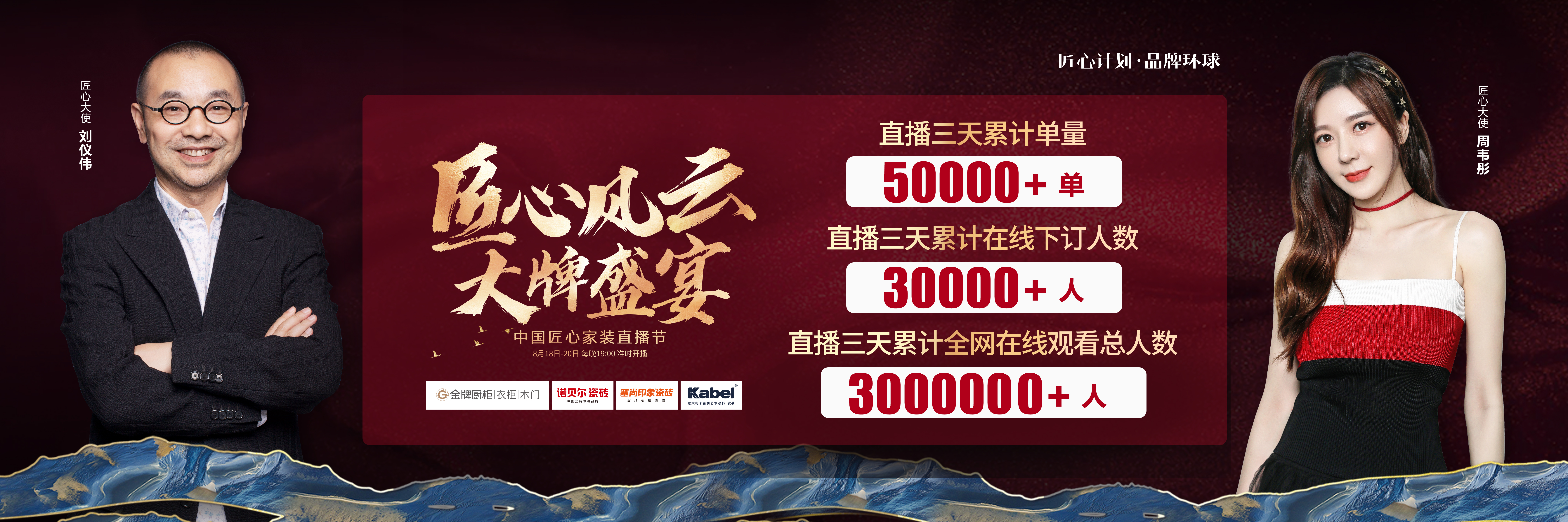 由55世纪厨柜、诺贝尔瓷砖、塞尚印象瓷砖、卡百利艺术涂料联合缔造,创赢科技系统支持全案营销执行的“匠心风云 大牌盛宴”中国匠心家装直播节于8月20日圆满落...